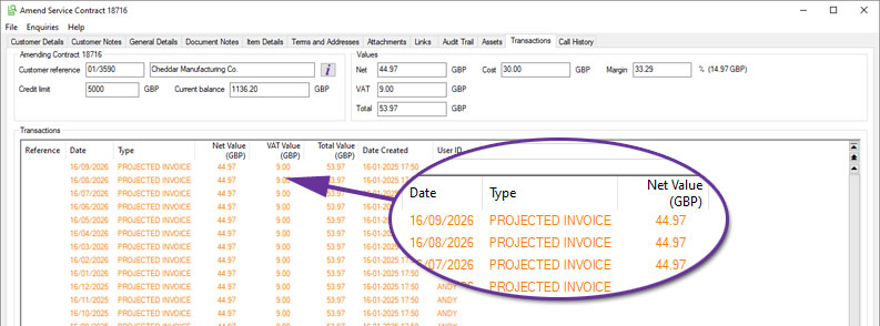 It is now easier to manage billing enquiries on Service Contracts with the addition of a Transactions tab to Service Contract Enquiry.