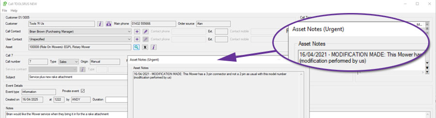 This allows you to build a comprehensive service history for each asset (even when work has been invoiced to different customer records, such as finance companies or previous owners).