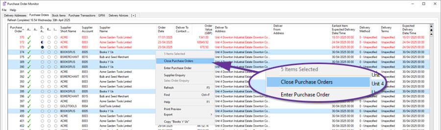 These additions will be particularly useful to those who arrange Workshop Job specific parts for the servicing and maintenance on customers' equipment. From a Workshop Job or Workshop Job Items monitor, a user can view the purchase order number or even use a context menu (right-click) to view the Purchase Order in full. From a Purchase Order Monitor or Purchase Order Items Monitor, a Sales Order column displays the Workshop Job.