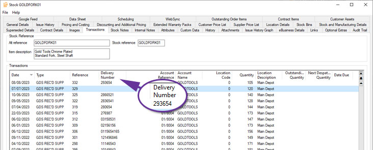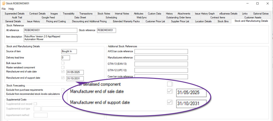 Stock items that are also contract items now also have additional fields:
