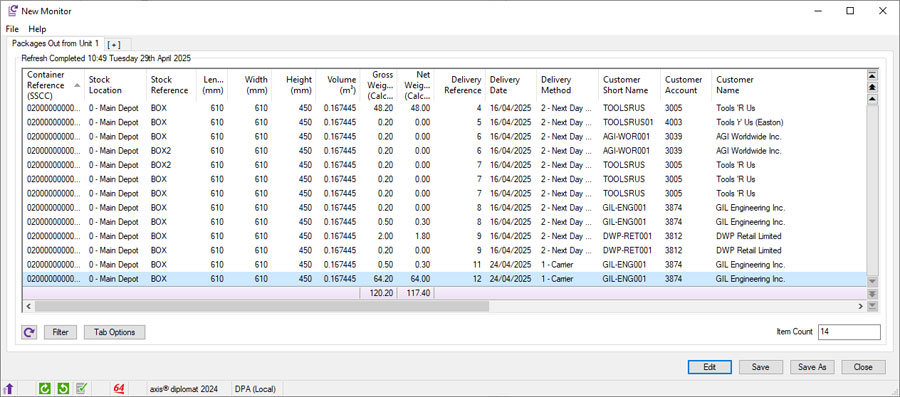 Scrolling data lists, used throughout axis diplomat in functions such as monitors and enquiries, now offer the ability to freeze any number of columns at the left-hand side of the data list, allowing the remaining columns to be scrolled left and right in the usual manner.